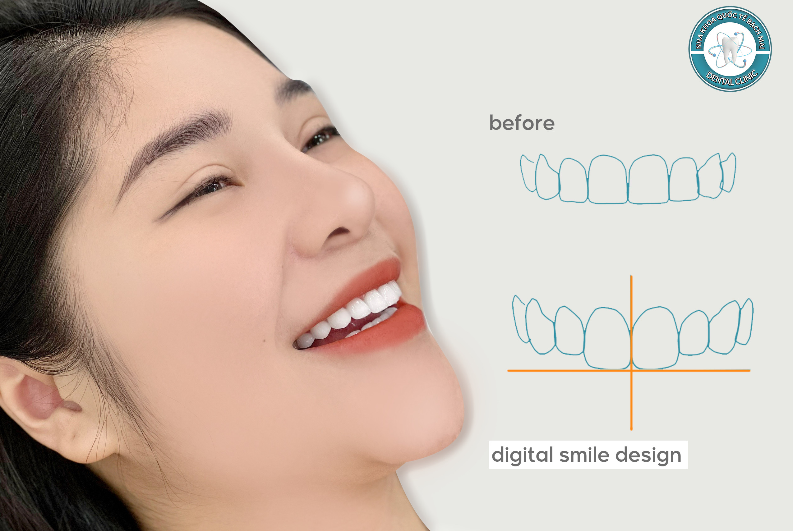 Một nụ cười toả sáng đôi khi không phải vì sở hữu một hàm răng hoàn hảo mà là một sự phù hợp, duyên dáng. Công nghệ thiết kế nụ cười tại Nha Khoa Quốc Tế Bạch Mai có thể mang đến cho bạn một nụ cười “chuẩn chỉnh” nhất, vừa rạng rỡ, vừa mang dấu ấn riêng đầy ấn tượng từ việc tìm ra tự tương quan giữa các đường nét trên khuôn mặt.