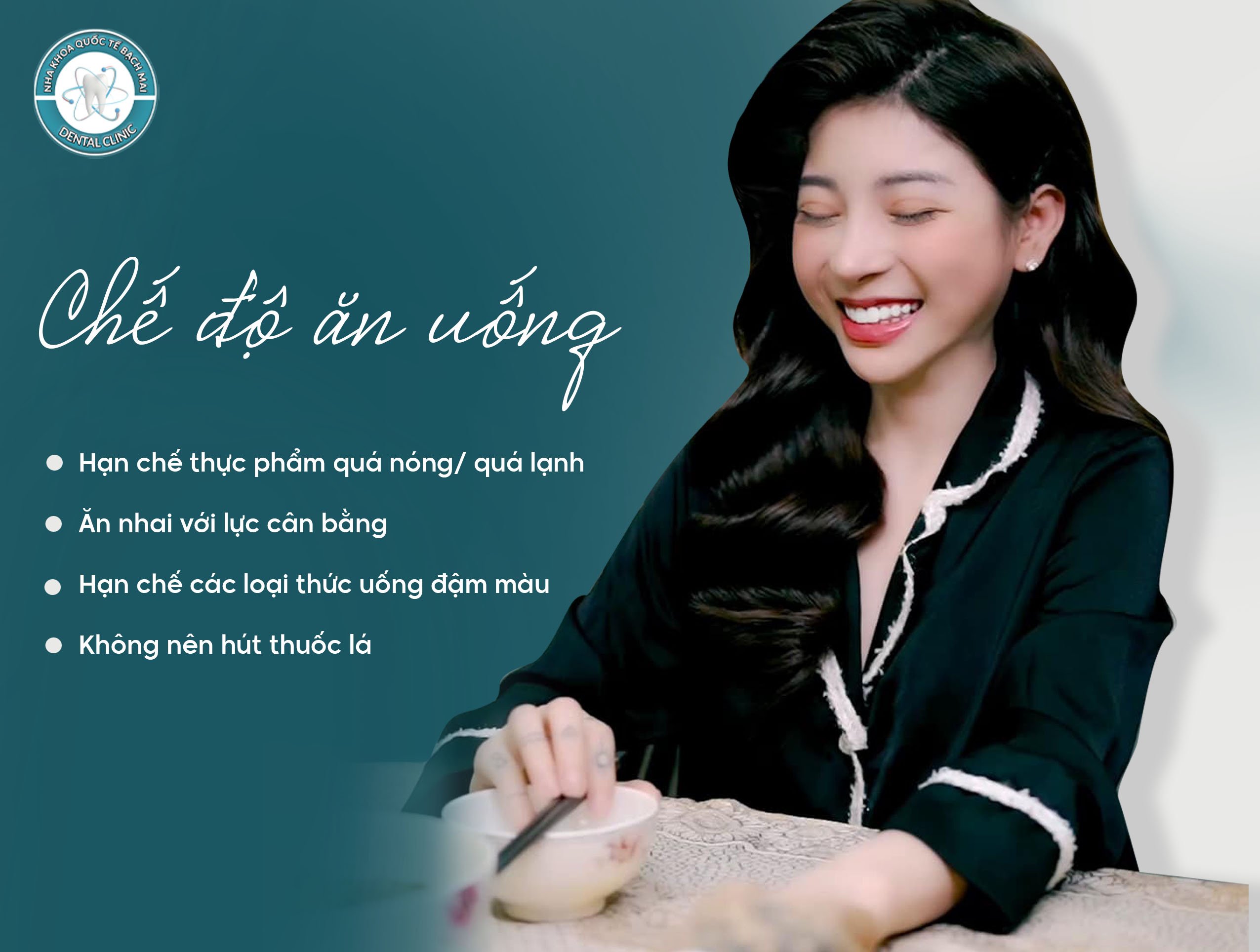 - Hạn chế các loại thức uống đậm màu như: trà, cà phê, các loại nước ngọt có gas... để đảm bảo răng sứ luôn trắng, sáng.